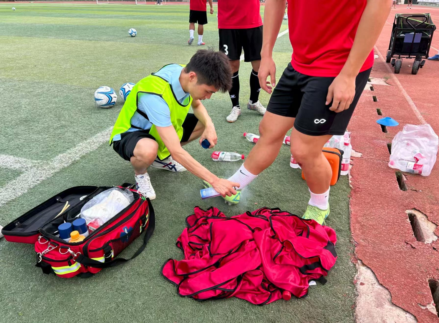 9月7日下午,在四川省城市足球联赛(“川超”)正赛开战之前,一场南充队与广元队的热身赛激情上线。当绿茵场上运动员们奋力拼搏的同时,川北医学院附属医院急诊医学科医务人员在场下默默守护比赛顺利进行。