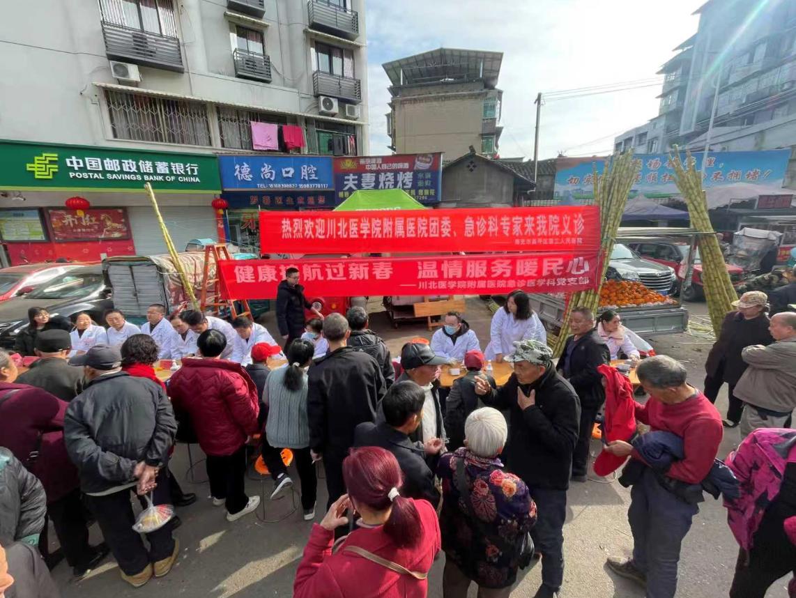 2月24日上午,为将优质、便捷的卫生健康服务精准送达基层群众身边,切实保障节日期间人民群众身体健康,川北医学院附属医院急诊医学科及党支部、工会联合医院团委,携手高坪区东观镇卫生院,在东观镇举办“健康护航过新春 温情服务暖民心”主题义诊科普活动。