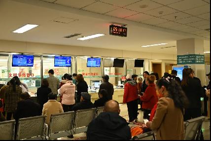 门诊缴费窗口和诊室候诊区