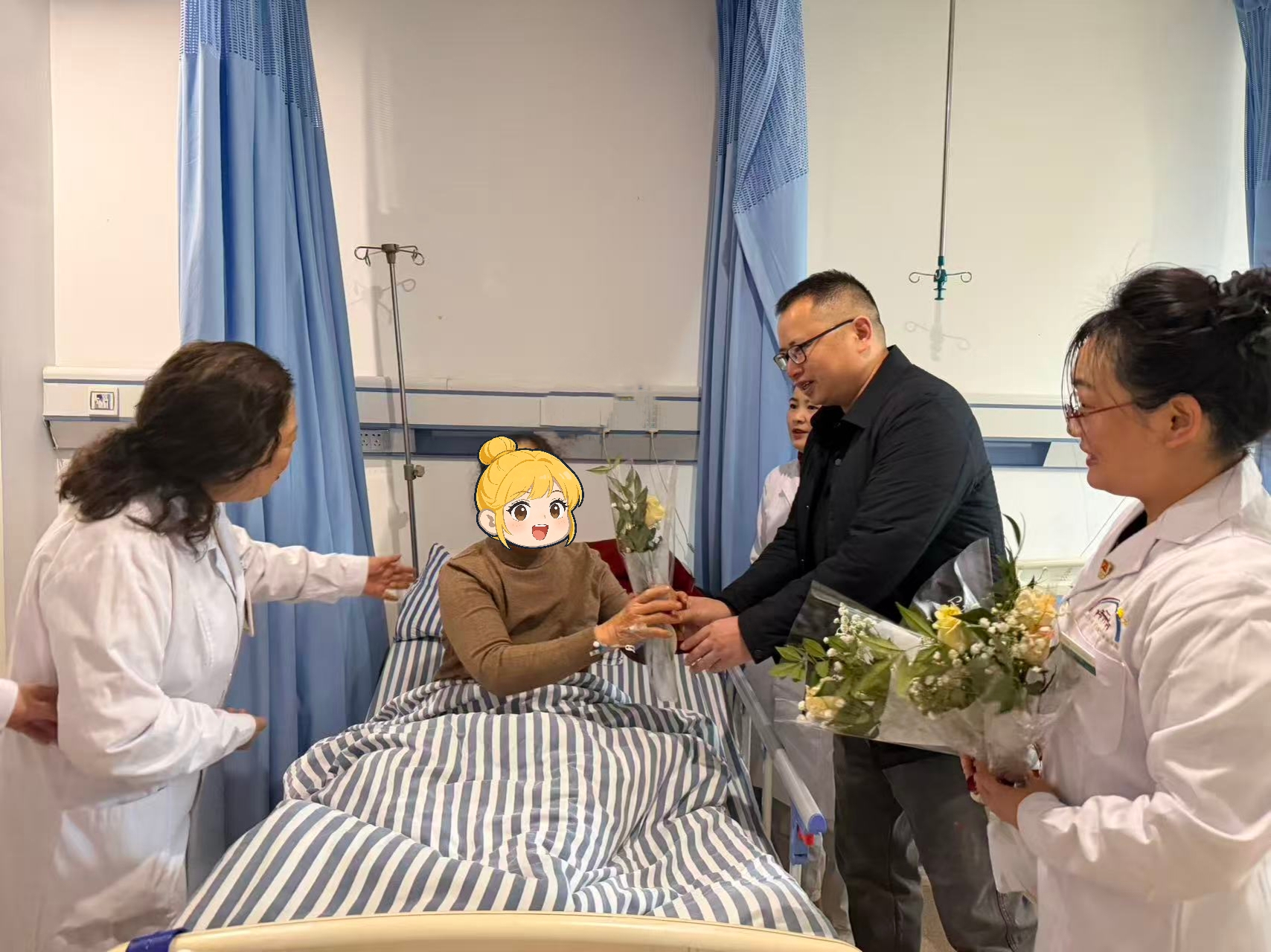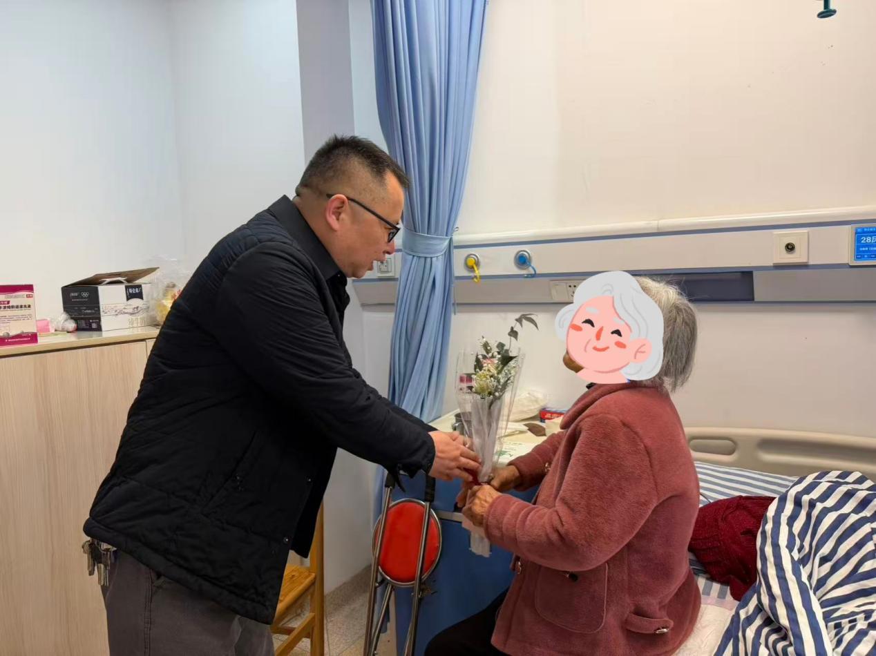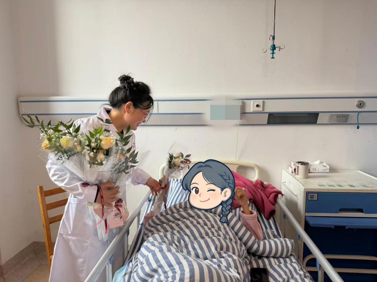 活动现场暖意融融,妇产科党支部全体党员、入党积极分子及医护骨干们化身暖心使者,分成两组走进一间间病房,用温柔与细心开启暖心服务。大家亲手为每一位女性患者、孕产妇送上娇艳的鲜花、写满祝福的温馨卡片,以及专属的健康体验礼包,礼包中涵盖妇科臭氧治疗、熏蒸发汗、盆底肌力评估、盆底康复治疗等贴心项目,把实实在在的健康福利,化作守护女性身心的温柔力量。