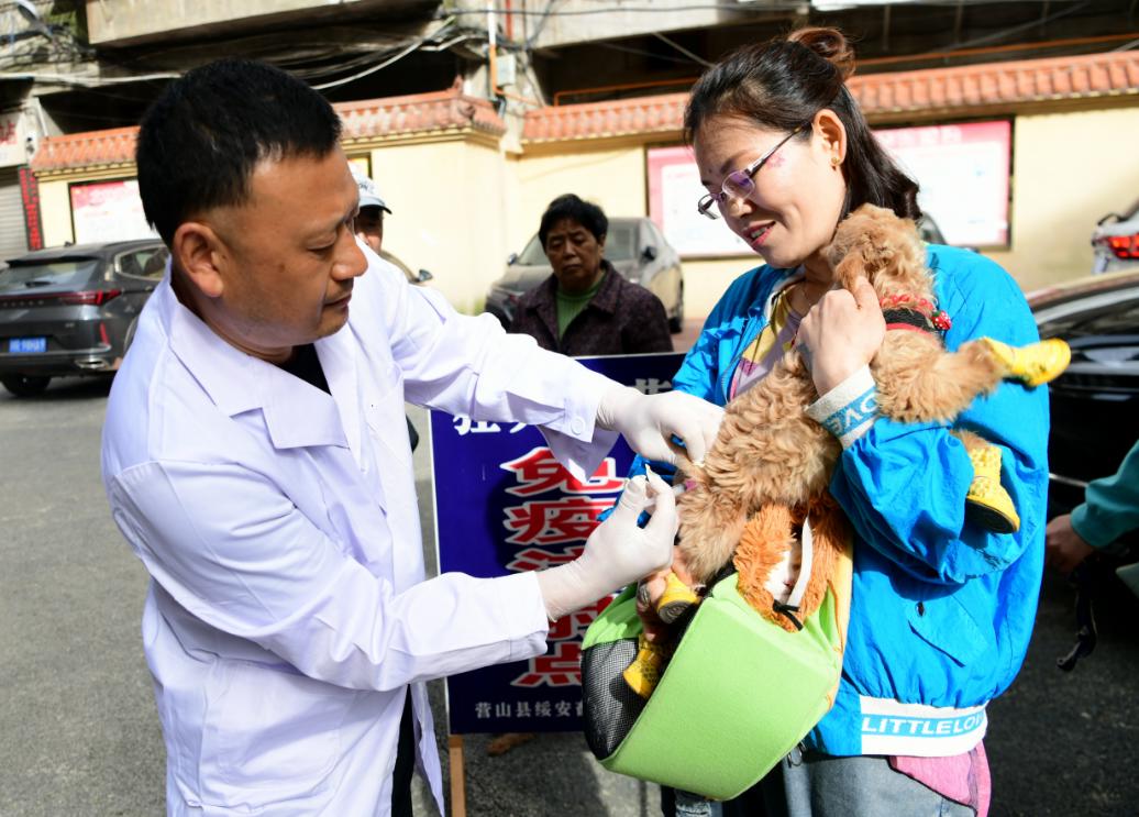 营山县动物疫病预防控制中心负责人李祥冬介绍,全县犬猫狂犬病免疫接种采取“集中免疫+全年补免”相结合的方式进行,城区犬只的免疫密度不低于95%,农村犬只的免疫密度不低于90%,犬只栓养率要达100%,人不慎被犬猫所伤,应立即到正规医院进行专业的伤口处理和免疫人用狂犬病疫苗和免疫球蛋白;确保全县无人感染狂犬病例发生,构建和谐人居环境 。(郭明 文/图)