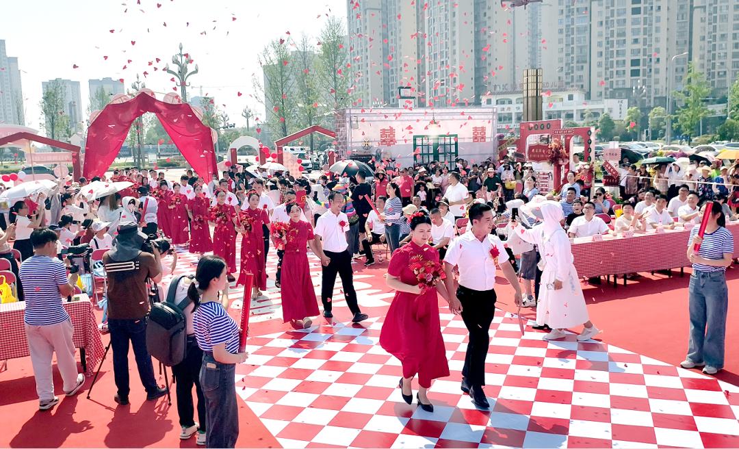 婚姻牵动千家万户,事关民生幸福。5月20日,营山县红军广场内张灯结彩、“囍”气洋洋。由营山县民政局和渠县民政局共同主办的“我在绥山‘营(迎)渠(娶)’你”520复古集体婚礼在此举行,来自营渠两县的20对新人身着传统中式婚服,以简约而不失庄重的仪式,共同许下相伴一生的誓言,生动诠释了新时代移风易俗的文明风尚。